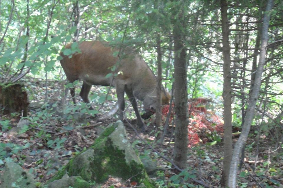 . Zwierzę najpierw potężnym porożem zerwało siatkę zabezpieczającą pasące się owce. Następnie buszując w młodniku, siatką zahaczył o drzewka skutecznie się unieruchamiając. Aby go uwolnić chcieliśmy znieczulić pacjenta na odległość. Najlepsza do tego typu zadań byłaby Strzelba Palmera (nie była jednak dostępna, my jej nie posiadamy ponieważ jest bardzo droga)